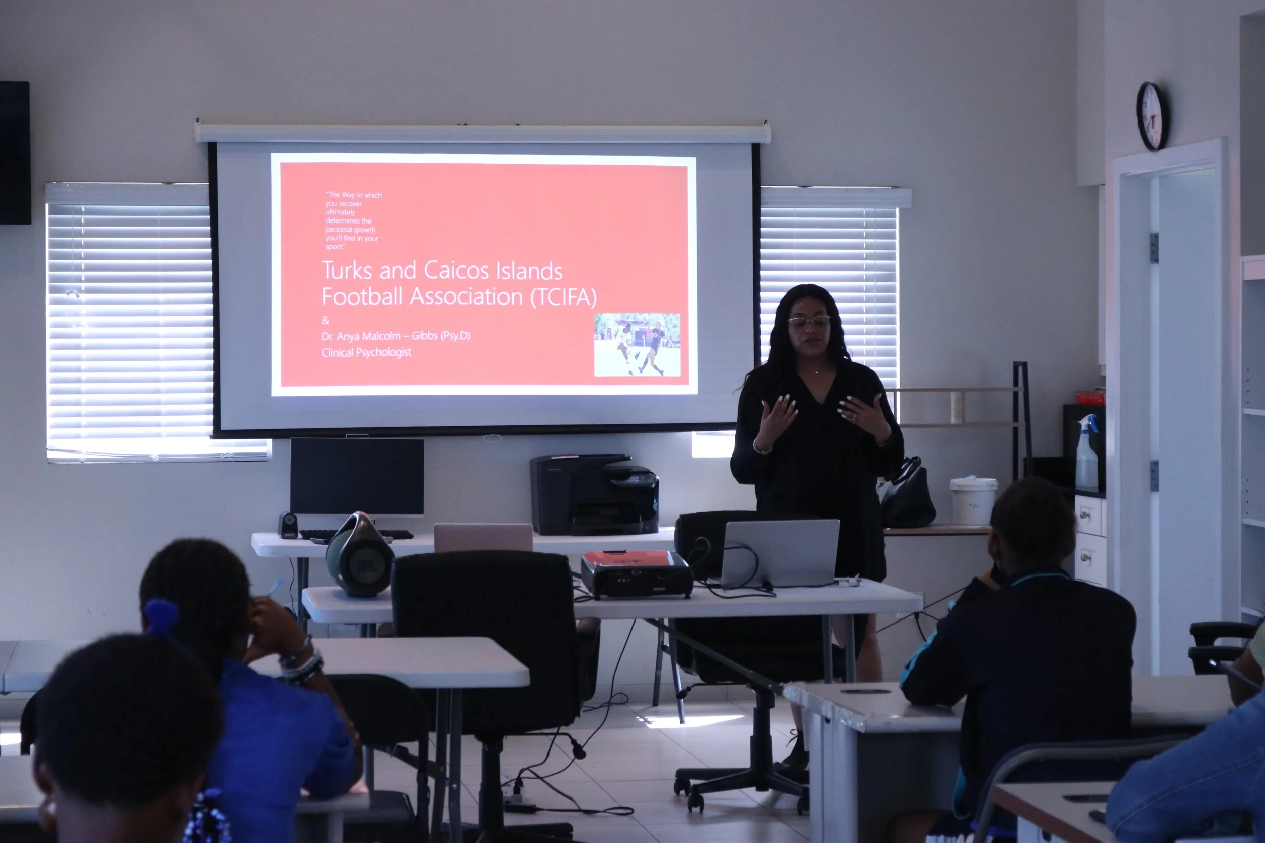 TCIFA hosted a psychological session for the Women's and Girls National Football players and staff, lead by Clinical Psychologist within the Department of Mental Health of the Turks & Caicos Government, Dr. Anya Malcolm-Gibbs.